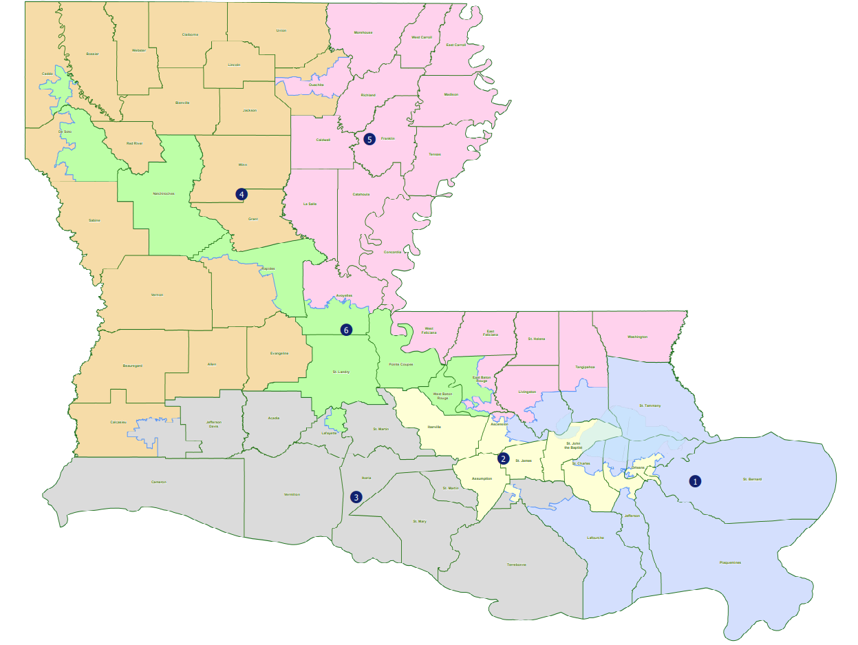 Current Louisiana Congressional Map with Second Majority Black District: